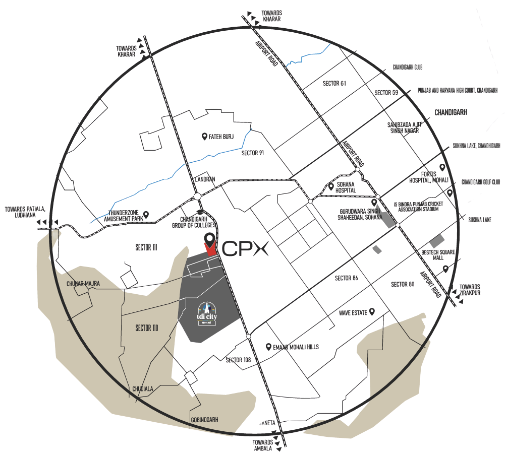 Strategically located in Sector 111, Mohali, CPX offers premium showrooms, modern offices, and lifestyle spaces in a thriving 1000-acre residential catchment. With seamless connectivity and future-ready infrastructure, it’s the perfect destination for businesses to grow, invest, and succeed.